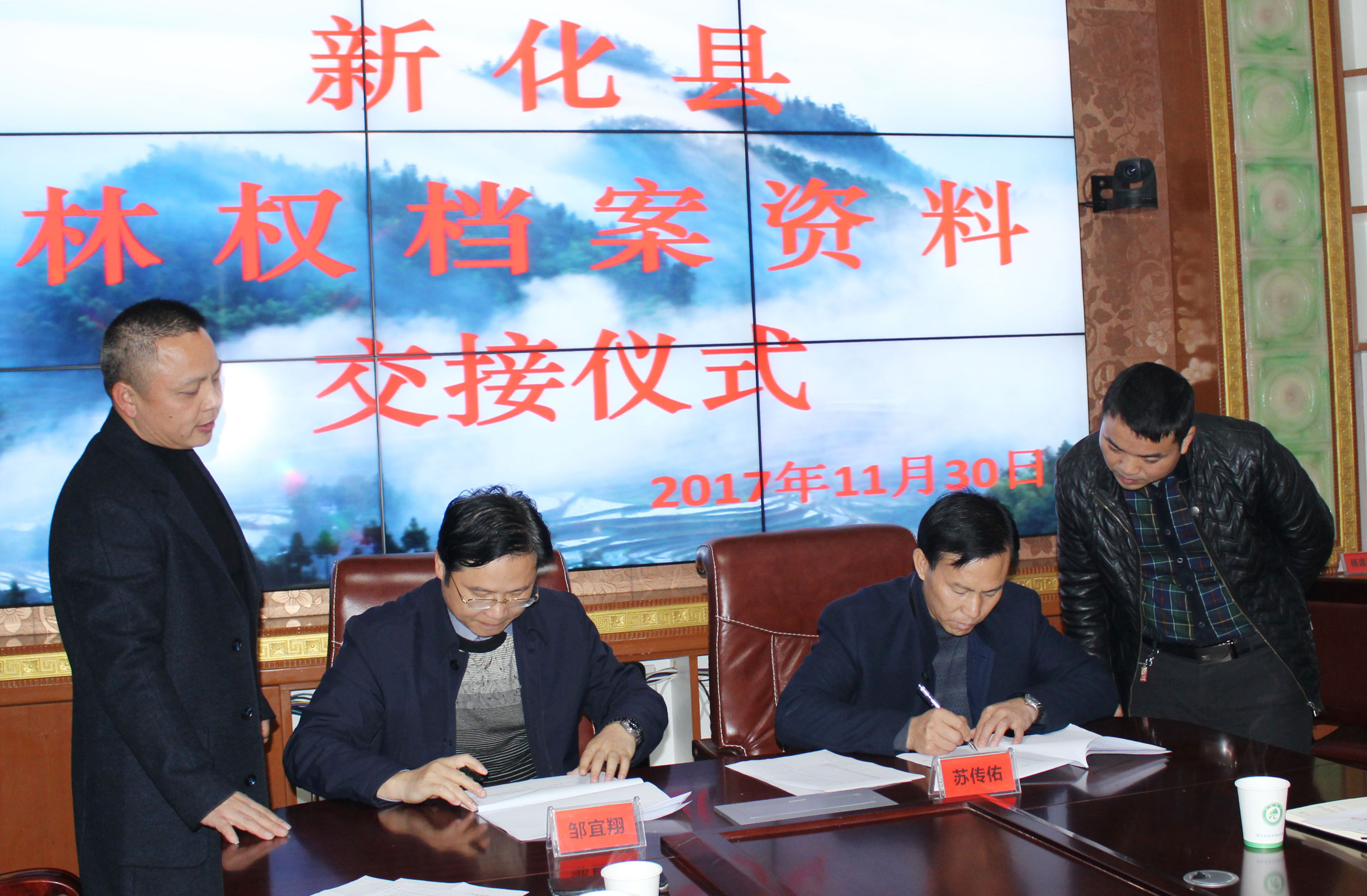 11月30日上午,新化县林权档案资料交接仪式在县林业局三楼会议室举办,县林业局与国土资源局负责人在林权档案资料移交协议上签字,我县3355盒20余万份林权档案正式移交给县不动产登记中心,县林业局顺利完成林权档案移交工作,这标志着我县不动产林权登记工作迈出了新的步伐。